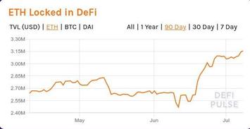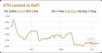 Последняя декада июня, "капитализация" DeFi в долларах пробивает февральский максимум, в ETH - приближается к февральскому максимуму, в