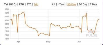 Далее рассмотрим хронологию перехода DeFi от зимнего хайпа к летнему. Хронология этого перехода представлена в виде серии слайд-шоу, отображающих динамику общей суммы заблокированных в DeFi средств, исчисляемых в USD, ETH и DAI (источник - сервис DefiPulse). DAI - это те самые фантики-"стейблкоины" DeFi-флагмана первой половины 2020 года MakerDAO, которые тот раздавал в обмен на "залог" криптовалюты, главным образом - на "залог" eth.